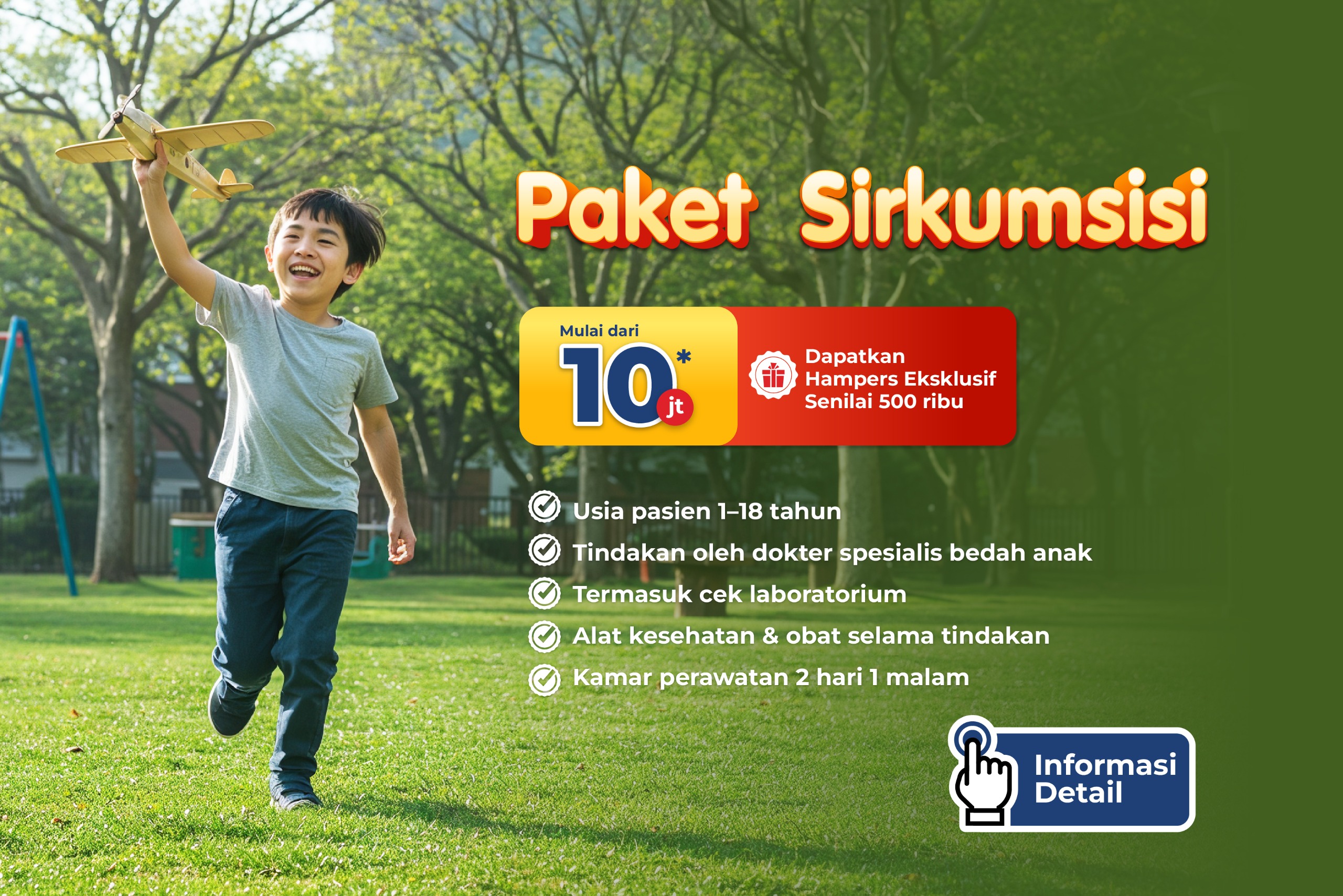 Pilihan perawatan sirkumsisi dengan 4 kelas rawat inap yang dapat disesuaikan dengan kebutuhan dan kenyamanan Anda: