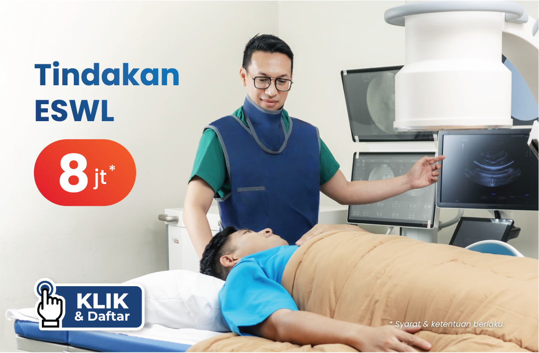 Tindakan pemecahan batu ginjal menggunakan metode Extracorporeal Shock Wave Lithotripsy (ESWL), yang dilakukan tanpa operasi.