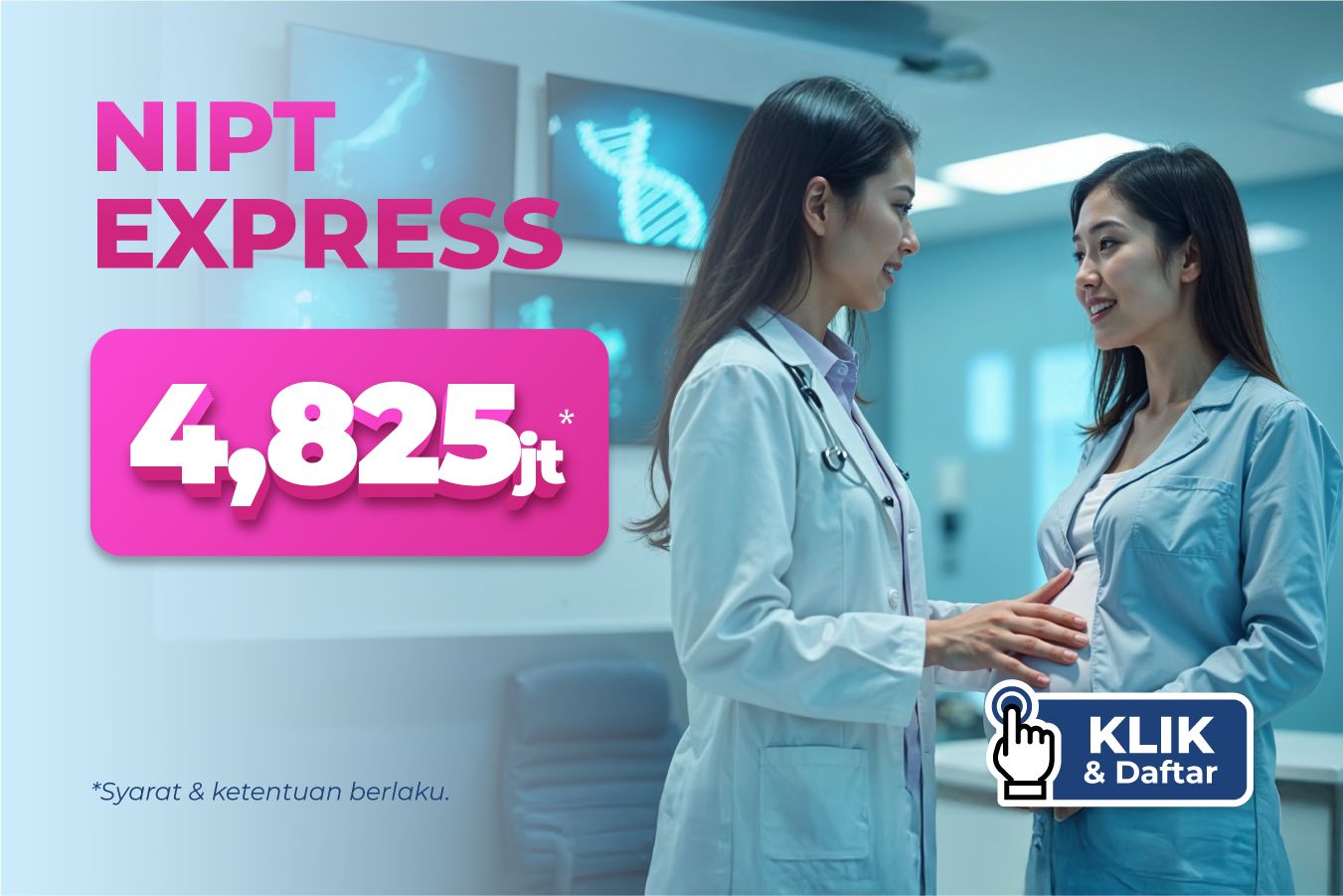Layanan skrining untuk mendeteksi kondisi genetik T21, T18, T13, Fetal sex